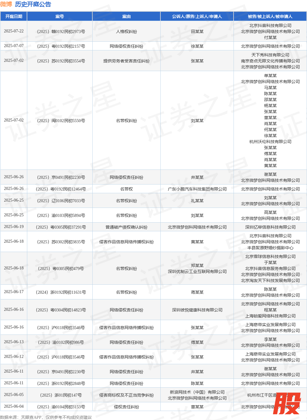 本站消息沪深策略沪深策略,根据天眼查APP显示,近日公布了一则北京微梦创科网络技术有限公司作为被告/被上诉人的开庭公告,详细内容如下:
